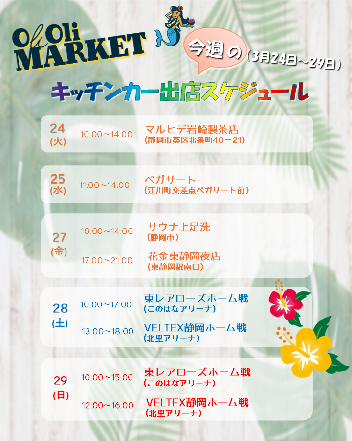 3月25日(水)~3月29日(日) キッチンカー出店スケジュール