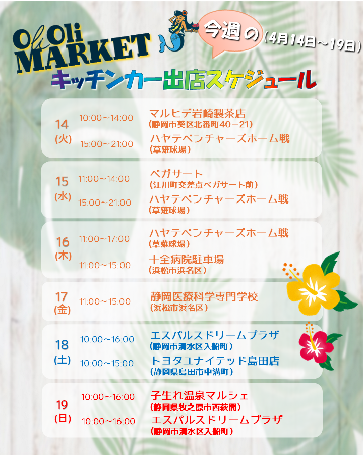 4月15日(水)~4月19日(日) キッチンカー出店スケジュール