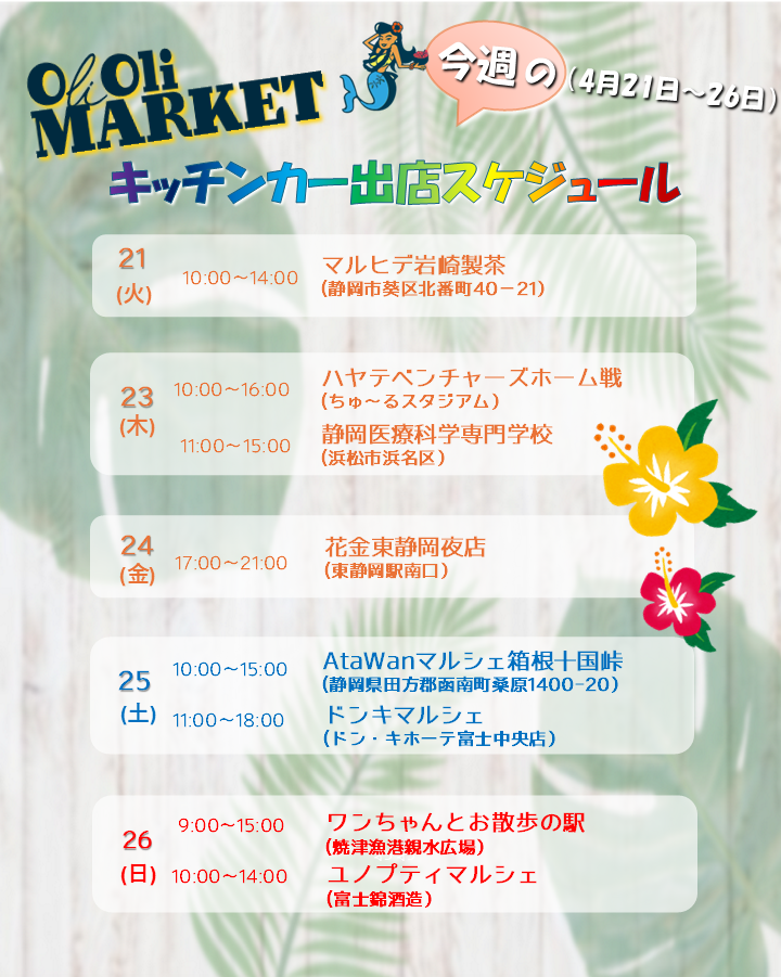 4月23日(木)~4月26日(日) キッチンカー出店スケジュール